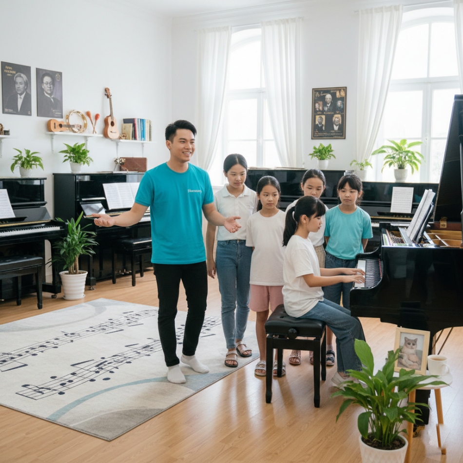 Khóa học piano cơ bản dành cho người chưa có kiến thức về âm nhạc. Giáo viên sẽ hướng dẫn bạn từ những bước đầu tiên như tư thế ngồi, cách đặt tay và đọc nốt nhạc.